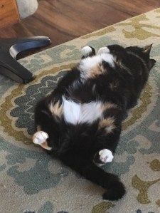 In the upper left photo a rare situation, both of them are lying together on the sofa. Normally Penny is being mean to Duchess, but for some reason they decided to nap together on the sofa. In the upper right photo, is Penny watching it rain and wishing for a dry day to let the windows be opened. Bottom left is a picture of Duchess after the visiting Vet had given her a “lion’s” cut, trimming her thick fur. And finally, in the lower right is Penny laying out in her silly style, paws up in the air. She can sleep like this for hours as long as no one moves at all.