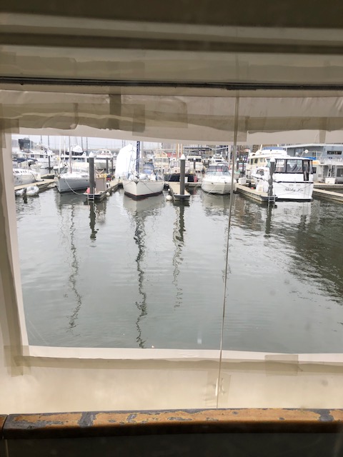 Photo above shows that our rear window is installed and provides a great view of the Capital Yacht Club marina yachts.